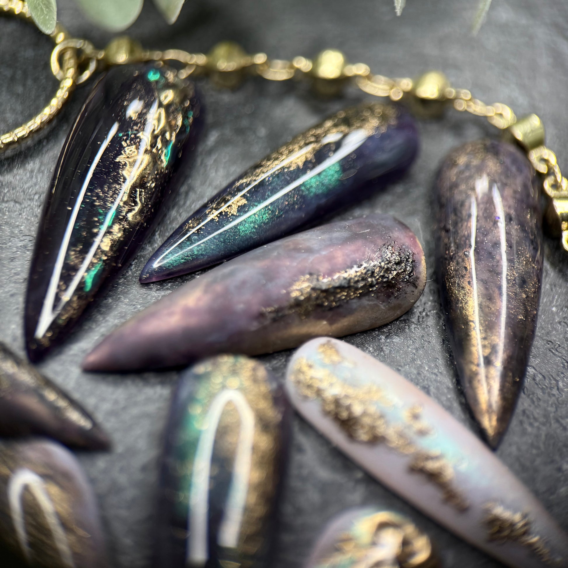 Set includes 10 nails in your sizes. Please use the measurement guide and enter your sizes in the box when ordering. If you have any issues please message and I can help.