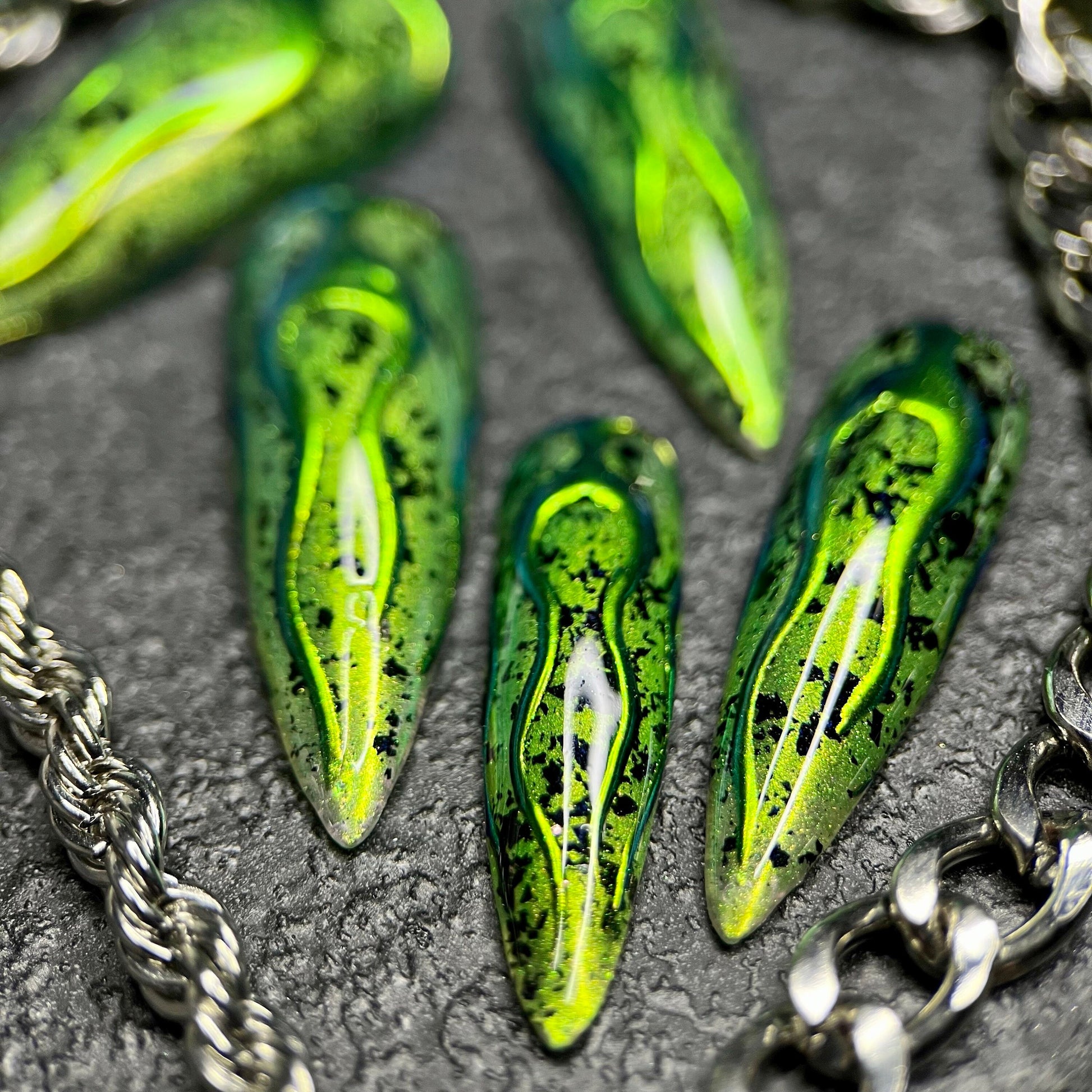 Please note colours may appear slightly different, due to lighting and screen the listing is viewed on. Nails are handmade to order, and as such will have small differences to the listing picture due to the nature of the design, especially for hand painted designs.